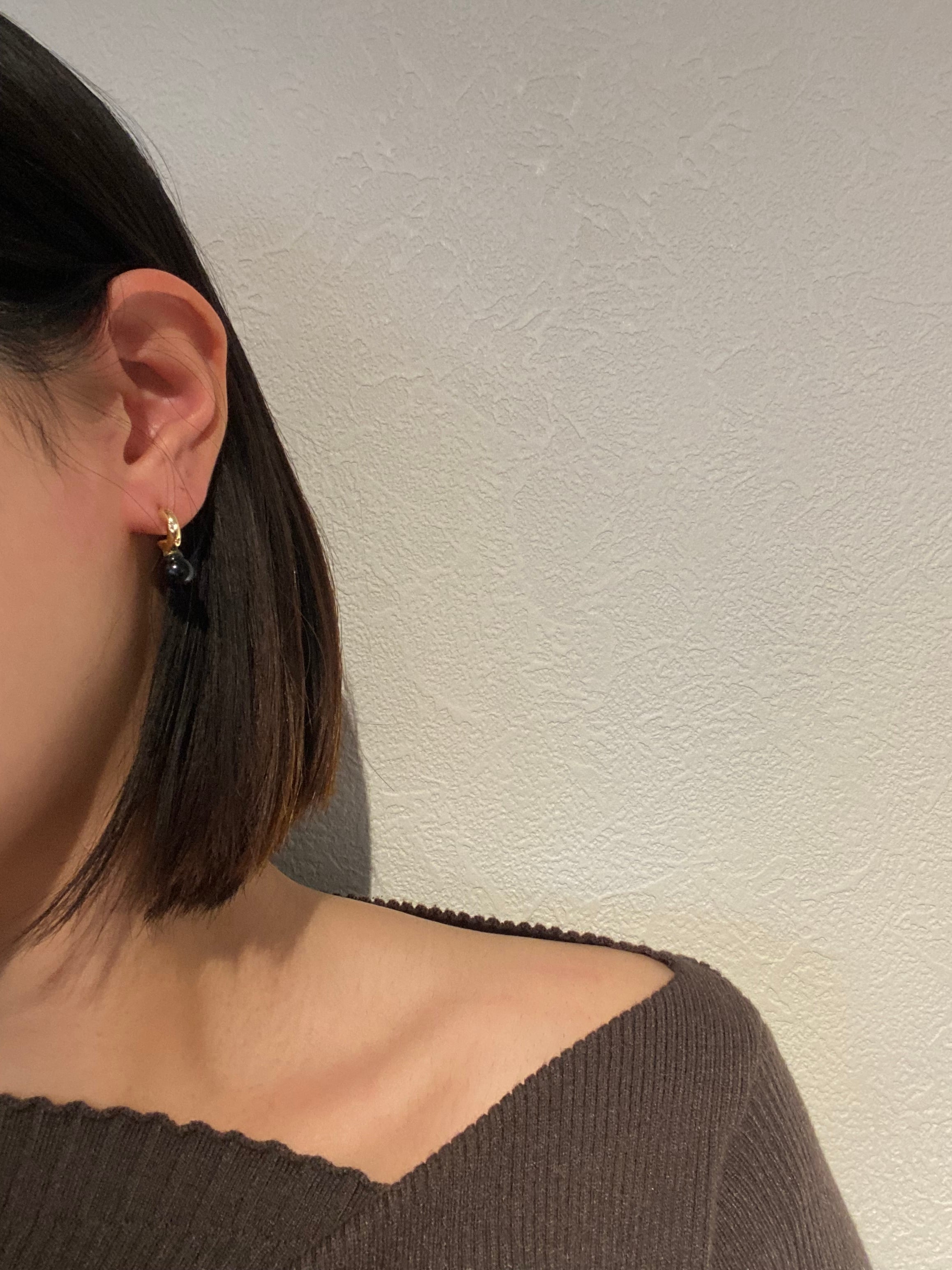 ころんとしたフォルムのミニサイズのフープピアスにブラックオニキスを組み合わせたピアスです。